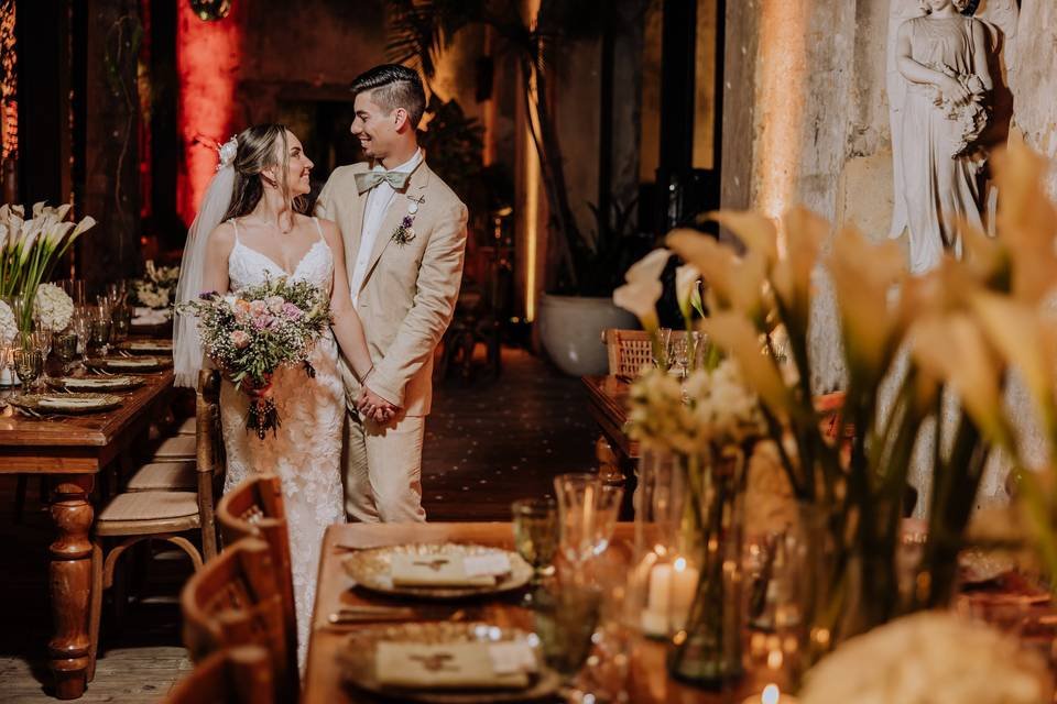 Convertimos salones, jardines y haciendas en escenarios de ensueño, donde cada elemento decorativo se orquesta para crear una atmósfera nupcial de lujo, inmersiva y memorable.