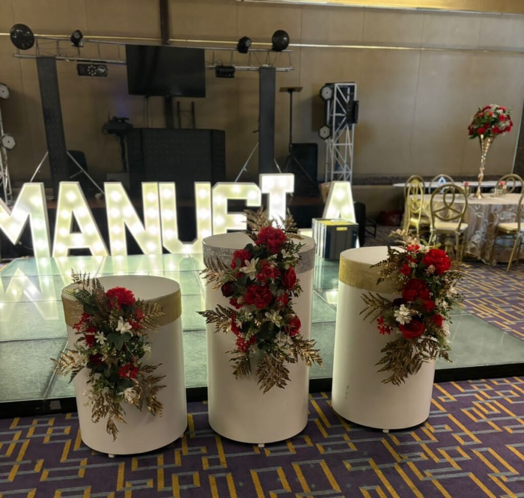 Decoración y ambientación para eventos, incluyendo arreglos florales y con globos, decoración de iglesias, salones, haciendas y jardines. Nuestro equipo puede embellecer espacios y casas.